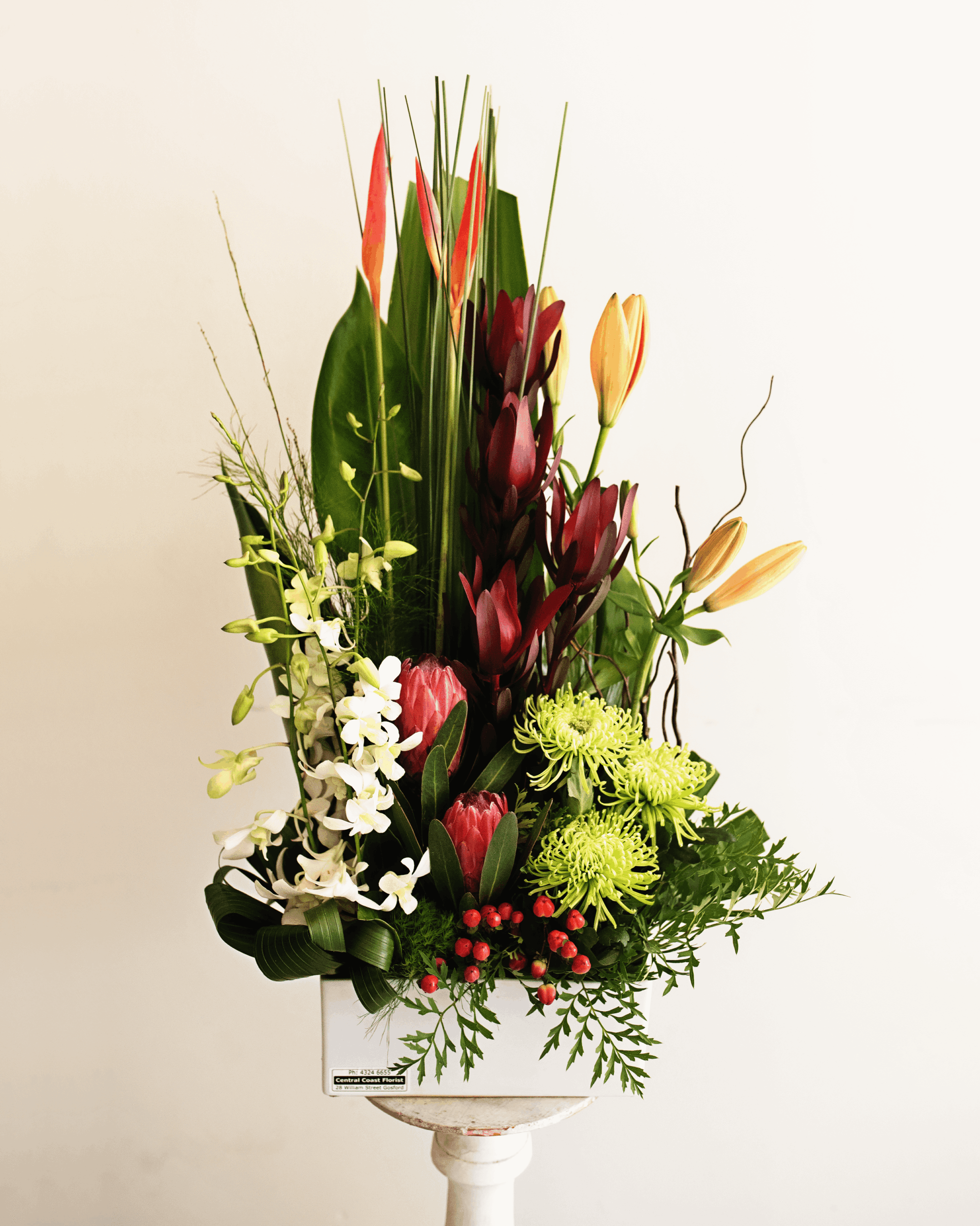 Saying goodbye to a loved one is never easy, often people find solace in the comfort of others and attending a funeral helps to get this closure. Central Coast Florist through its own arrangements or through Interflora Nationally and Internationally, provides a range of tasteful, sophisticated and carefully arranged flowers hand crafted by our expert florists. Textures, colours and flower freshness are carefully considered. There is a wide range of funeral flower options to choose from.